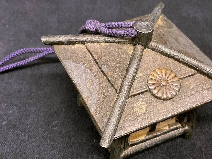 皇室 純銀製 約125.1g 昭和三年大札記念 菊御紋章入 灯籠型 ボンボニエール 天皇家御下賜品 菊花御紋 吊灯籠 小物入れ